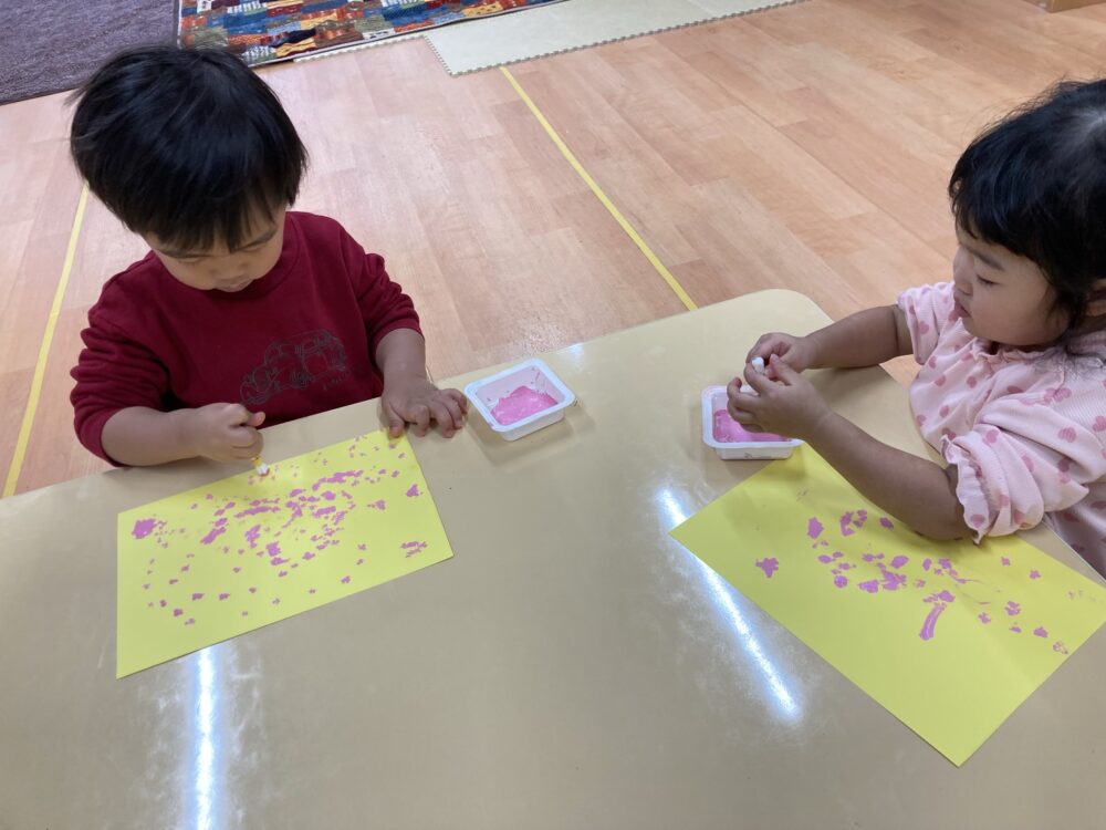 赤色と水色スタンプ!ペタペタッ♪